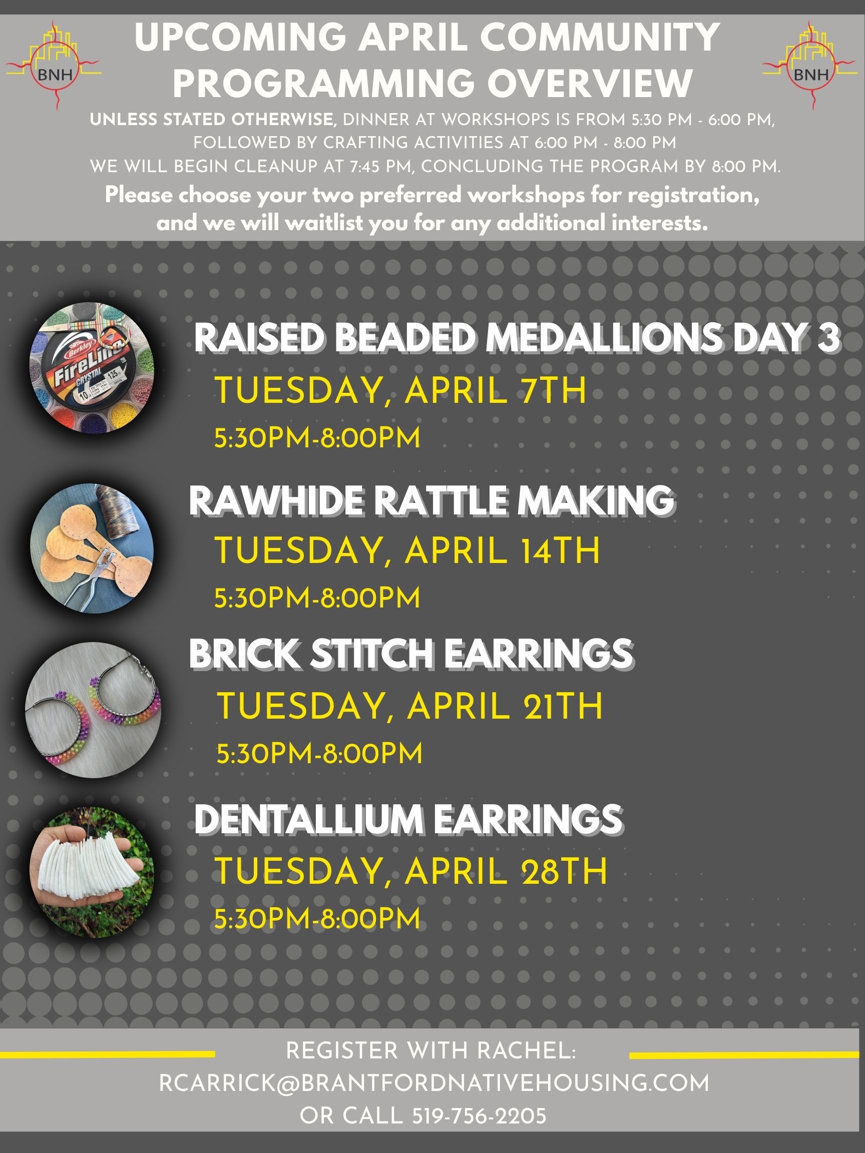 Join Us This April! As we welcome the spring season, we also welcome community, creativity, and connection. All are invited to gather with us for evenings of crafting and sharing together. April 7th – Raised Beaded Medallions (Day 3) April 14th – Rawhide Rattle Making April 21st – Brick Stitch Earrings April 28th – Dentallium […]